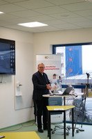Frau Staatsministerin Melanie Huml und Oberbürgermeister Andreas Starke freuten sich sehr, dass ein weiterer Meilenstein im Aufbau des Medical Valley Bamberg durch die neue Trainingsstätte erreicht wurde. Durch eine anteilige Förderung des Bayerischen Wirtschaftsministeriums wurde dieses Teilprojekt erst möglich - Staatssekretär Roland Weigert sieht die 2,5 Millionen Euro Fördersumme als gute Investition. Die Bundestagsabgeordnete Emmi Zeulner verwies auf die hohe Bedeutung der neuen Lehr- und Lernkonzepte für die Ausbildungen der gesamten Berufe des Gesundheitswesens und meisterte im Rahmen einer virtuellen Lernsituation die Betreuung eines COPD Patienten hervorragend. Ein weiteres Highlight war die Schlüsselübergabe durch den Bauherrn und Vorsitzenden des Vorstandes der Sozialstiftung Bamberg Xaver Frauenknecht an den Projektleiter Frank Feick.