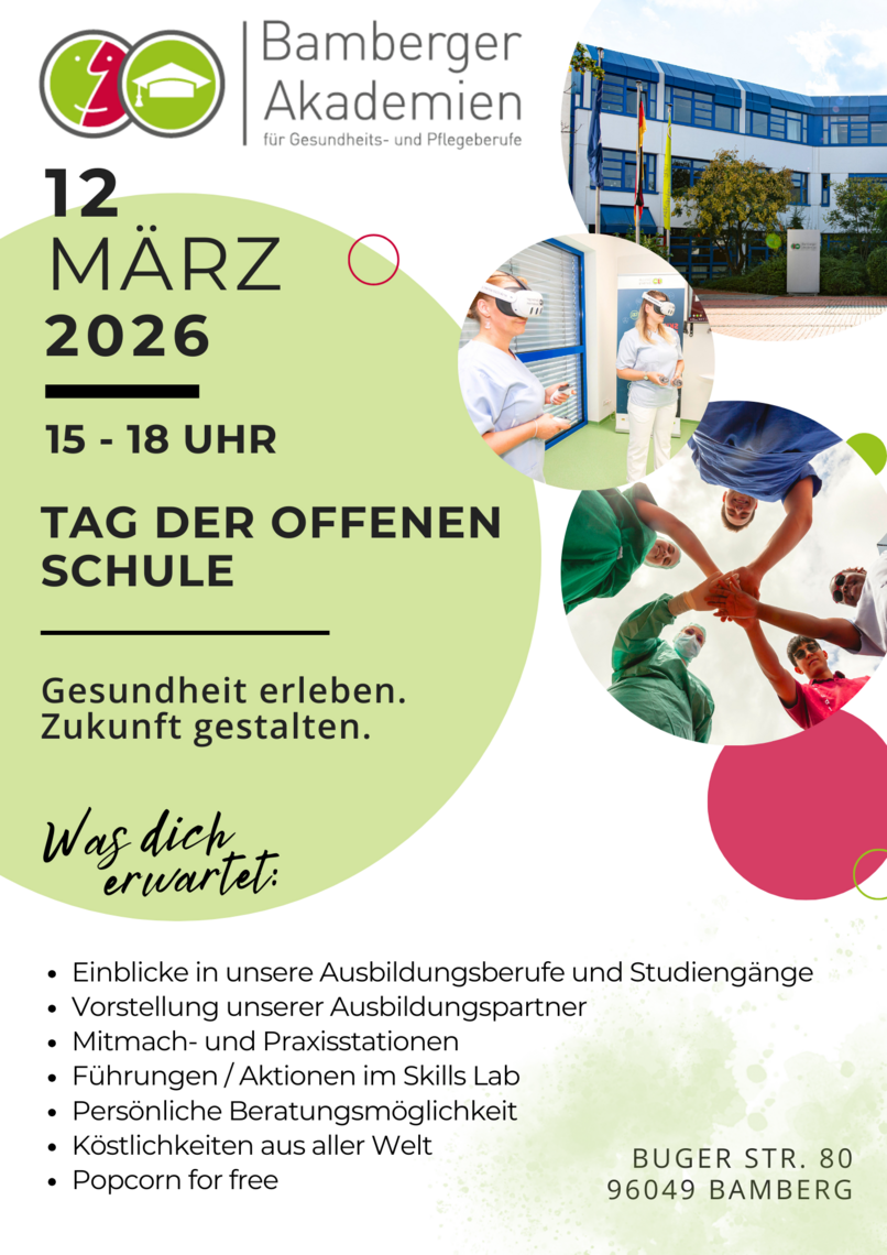 Wir laden Sie herzlich zu unserem Tag der offenen Schule an die Bamberger Akademien für Gesundheits- und Pflegeberufe ein!
